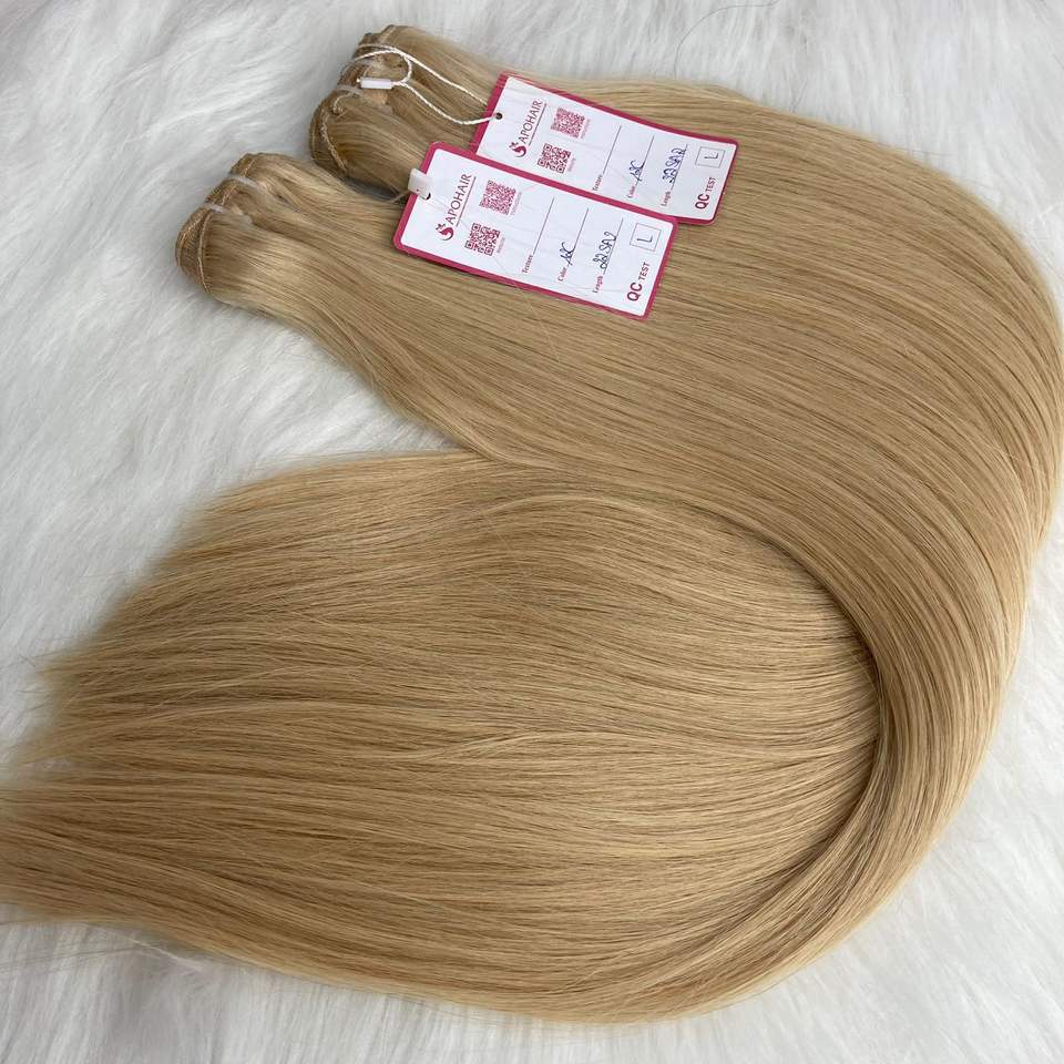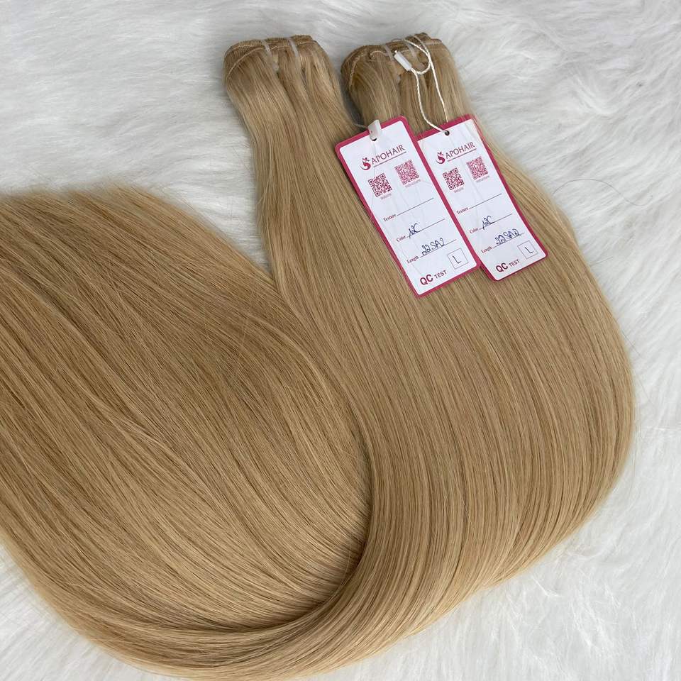 Luxury Straight Ash Blonde Natural Wave Virgin Human Hair Clip-in Bundles Extensions APOHAIR 100% Machine 3 Sewing Double Wefted