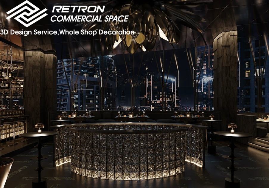Luxury-Style Cocktail Bar Interior Design Furniture, Lounge, Bar Counter, and Display Cabinet Design with LED Lighting