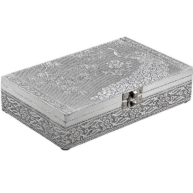 Luxury Style Handmade Metallic Silver Jewelry Storage Box Adult Girls Necklace Earring Makeup Kit Storage Keepsake Box