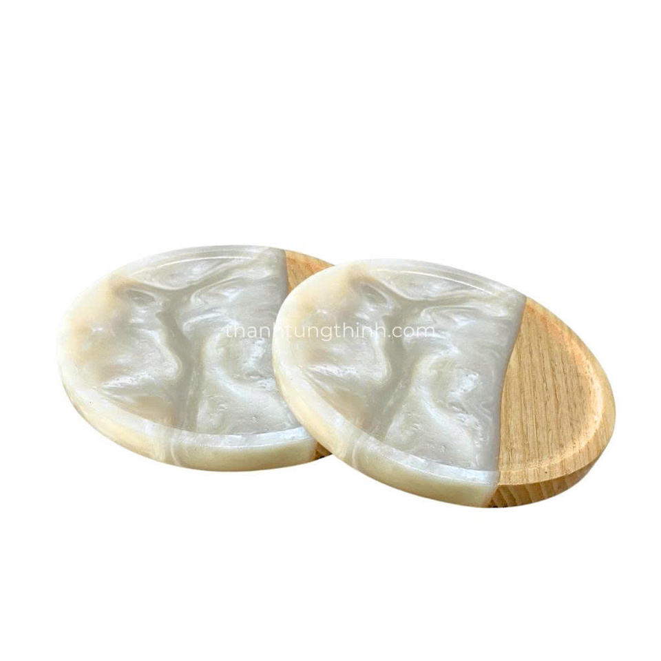 Luxury Style Natural Wood Epoxy Resin Coaster Set For Dining Table And Kitchen Use From Vietnam Supplier