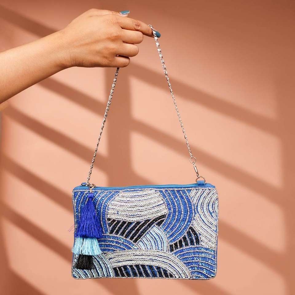 Item:Stylish Multicolor Glass Beaded Cotton Clutch Bag