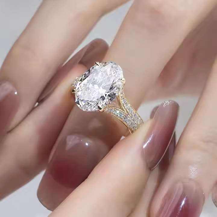 Luxury Stylish Oval Cut Moissanite Diamond Engagement Ring 925 Sterling Silver Classic Wedding Fine Jewelry