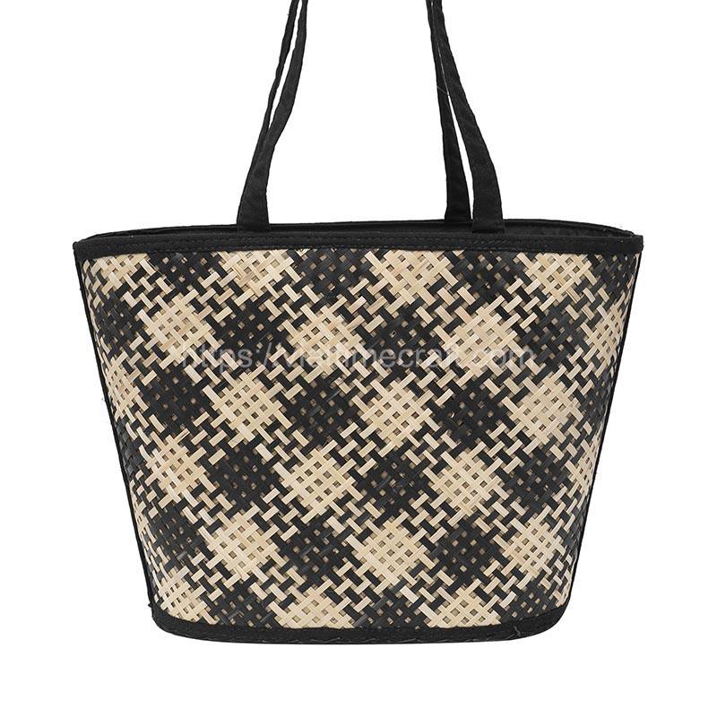 Luxury Summer Beach Bag Bamboo Model with Open Closure Zigzag Pattern Wholesale From Vietnam for Shopping