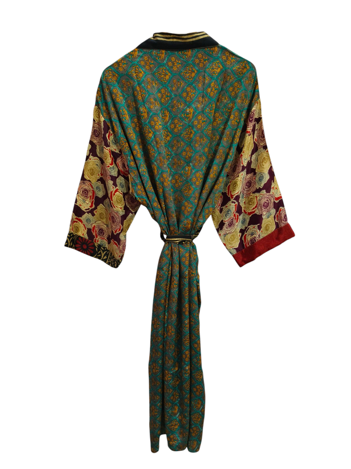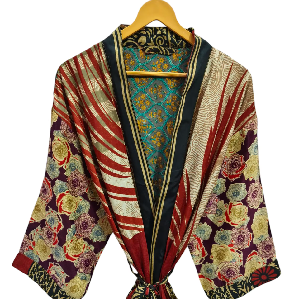 Luxury Summer Kimono Bikini Cover up, Night Wear Long Robe, Handmade Indian Vintage Recycled Silk Sari Kimono,