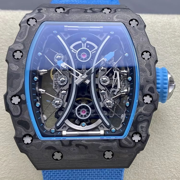 Luxury Super Quality Luminous waterproof Mechanical Watch 44mm JB Factory tourbillon movement RM53-01 NTPT Carbon skeleton watch