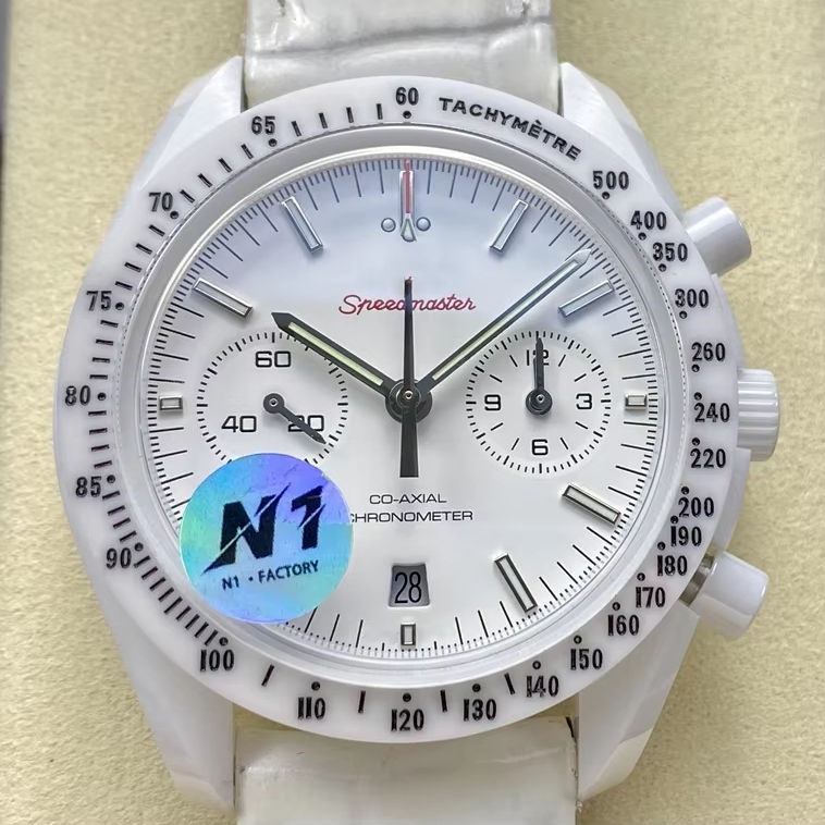 Luxury Super Quality Waterproof Mechanical Watch 44mm N1 Factory 9300 Movement White Ceramic Case Multi-Function Chrono Watch