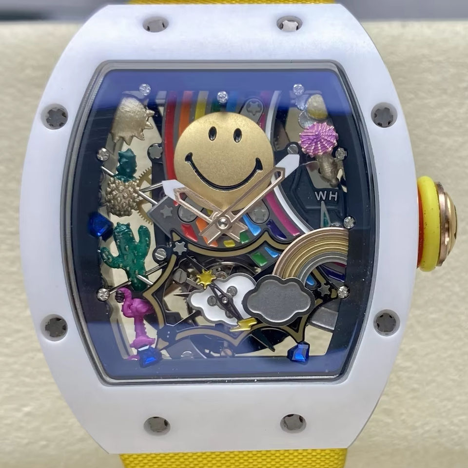 Luxury Super Quality Waterproof Mechanical Watch 41mm Automatic Movement RM88 Smiley White Ceramic Skeleton watch