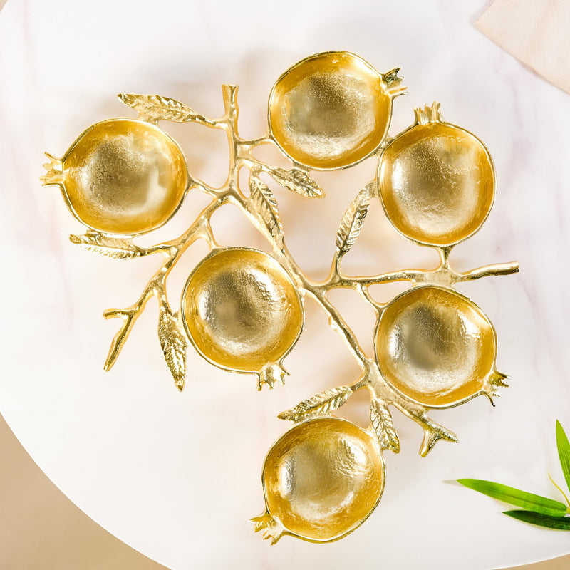 Luxury Tableware Set Gold Enamel Pomegranate Serving Bowl 6-Section Nut Bowl Durable Metal Fruit Platter Dry Fruit Server