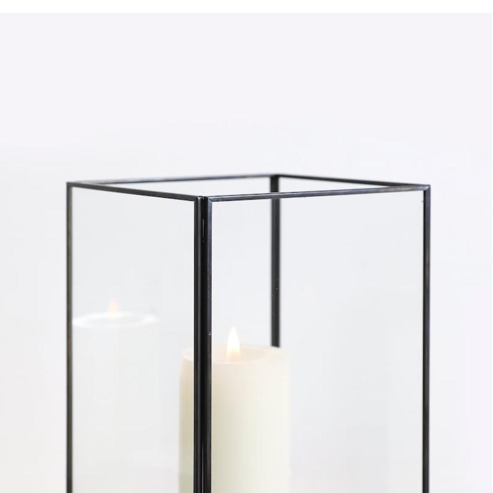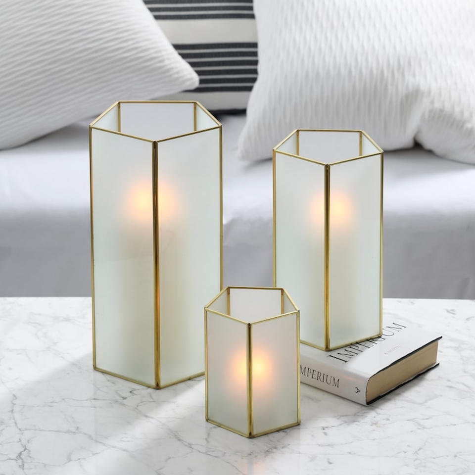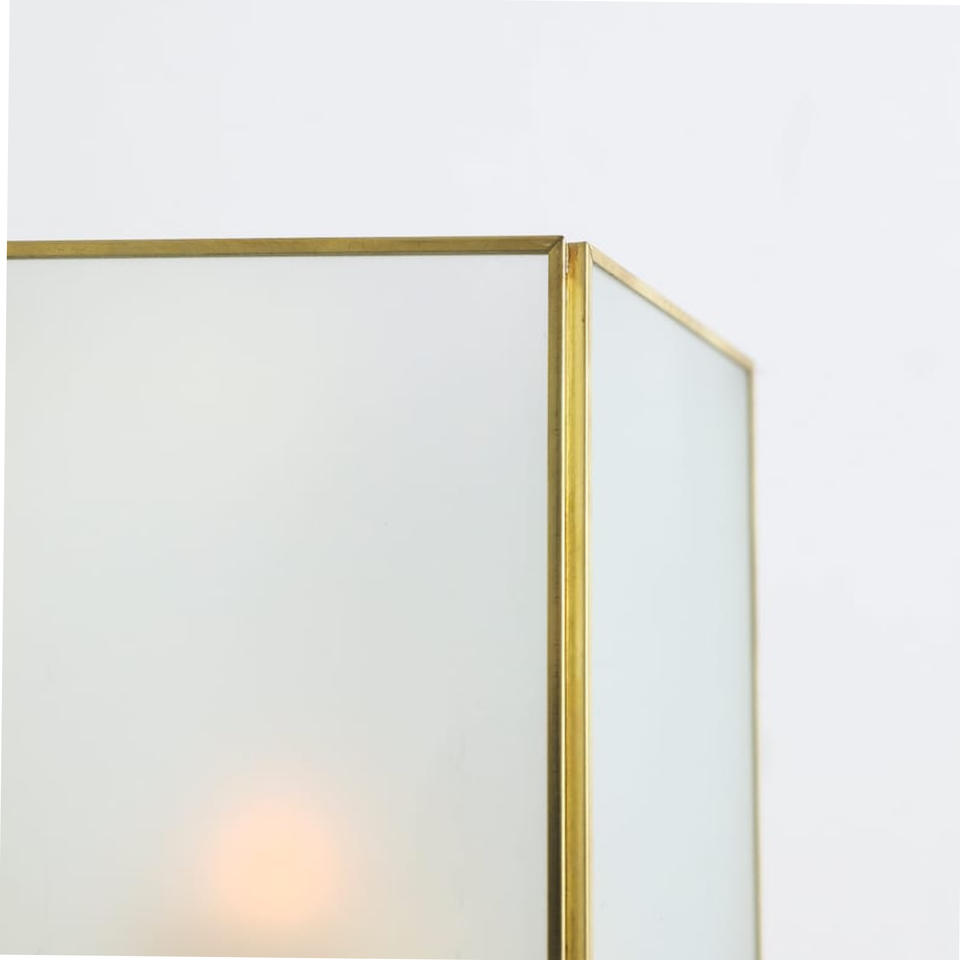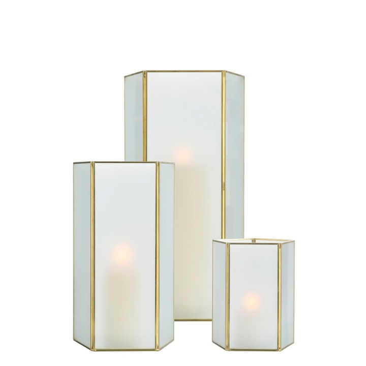 Luxury Tall Geometric Metal Brass Frosted Glass Church Pillar Holder for Home Decoration Hurricane Candle Holder