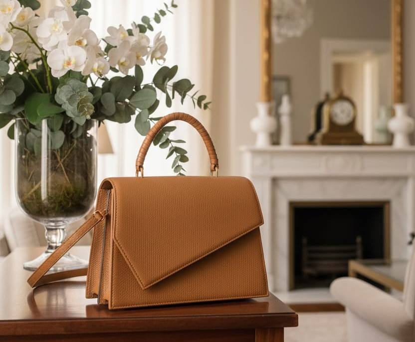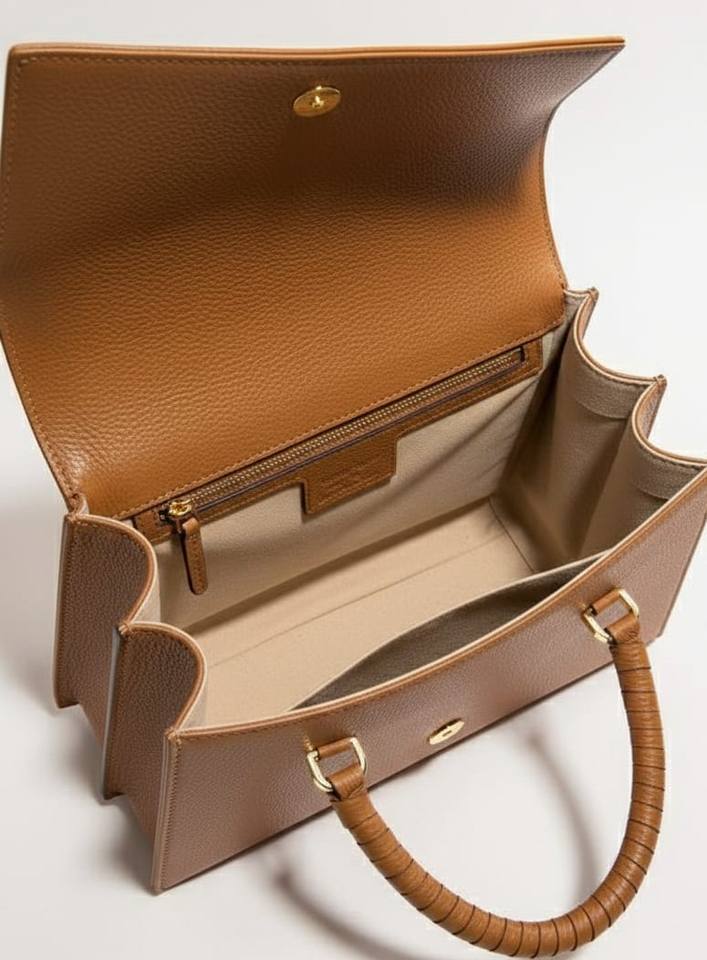 Luxury Tan Genuine Leather Fashion Lady Top Handle Satchel Bag Women Designer Cognac Candy Pebbled Zip Crossbody Purse Wrapped