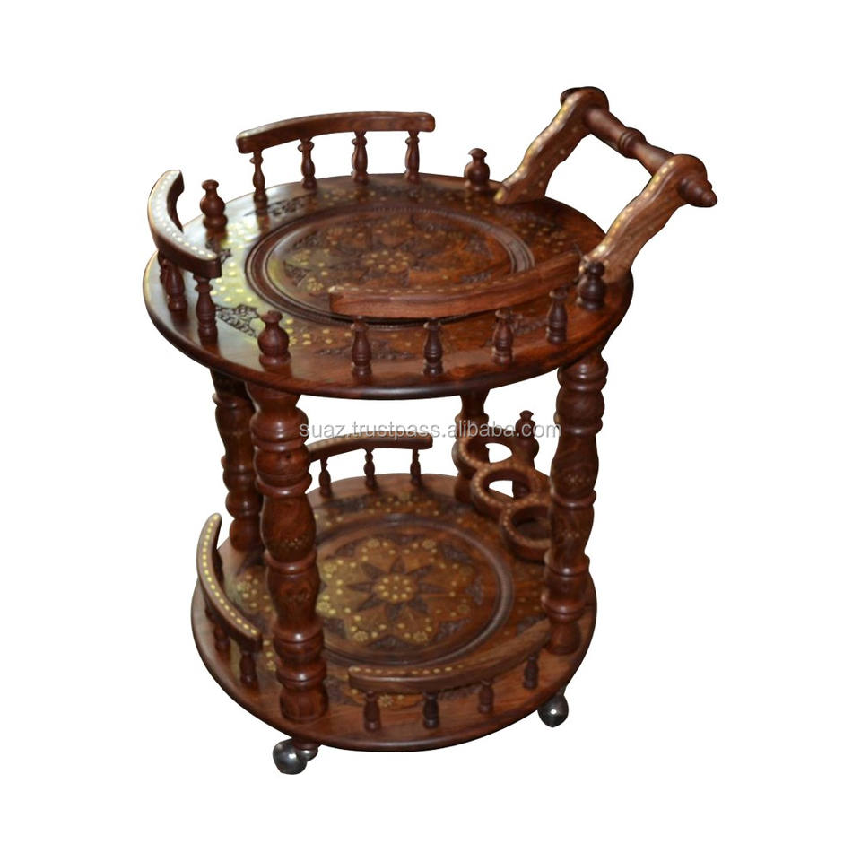 Luxury Tea Trolley Carved Fancy Traditional Tea Cart , Wooden Tea Trolley , Wooden Tea Cart