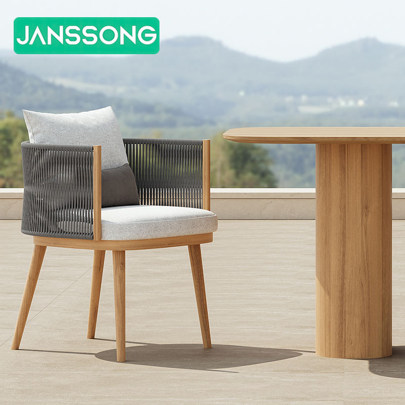 Luxury Teak Wood Patio Table Outdoor Dining Set Garden Table and Chairs Hotel Garden Furniture Set Outdoor Rope Dining Chair
