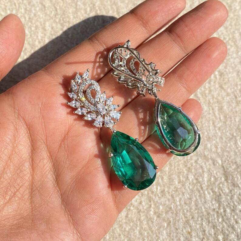 Emerald Green Earrings Statement CZ