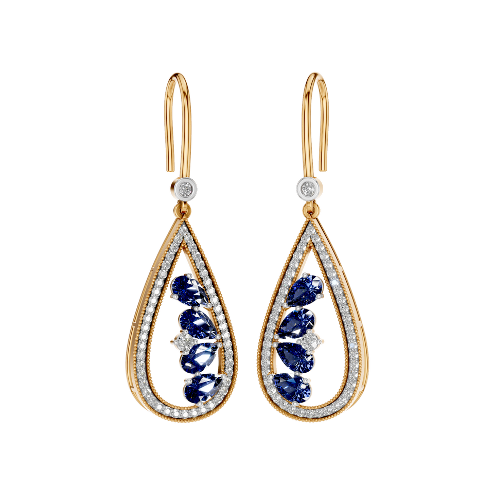 Elegant Teardrop Earrings with Blue Sapphire Precious Gemstone