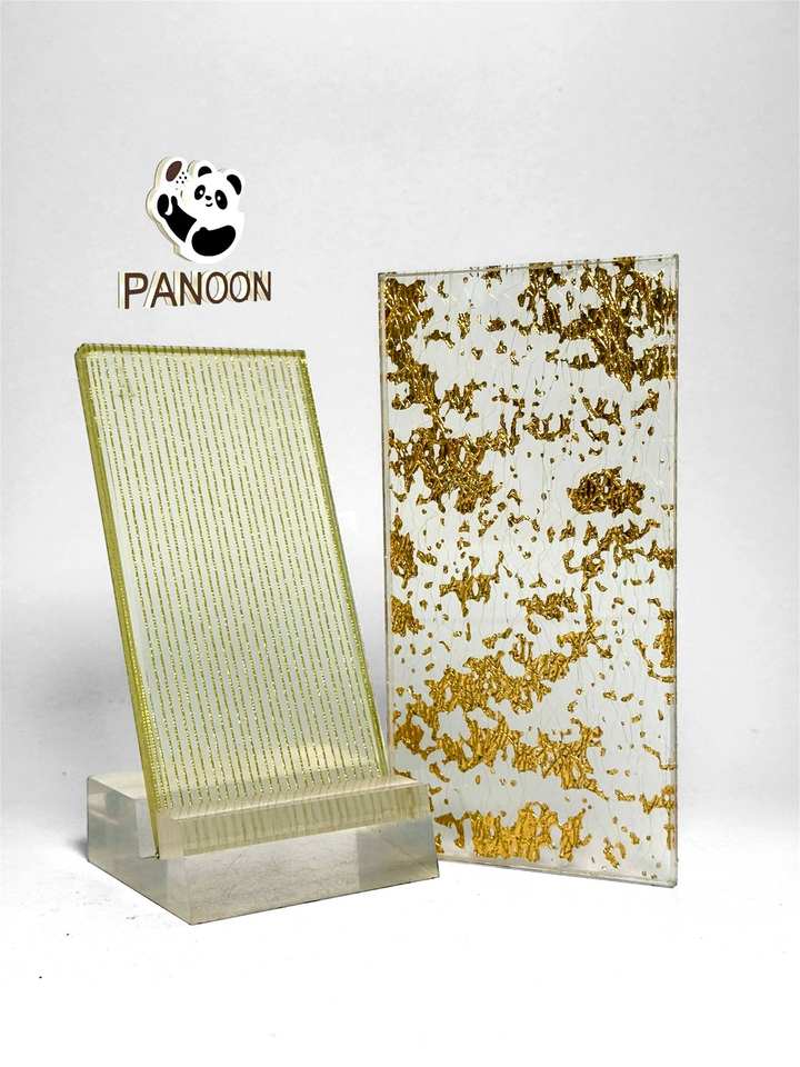 Luxury Tempered Decorative Glass Model AG01 with Scattered Gold Leaf Pattern for Architectural Decoration