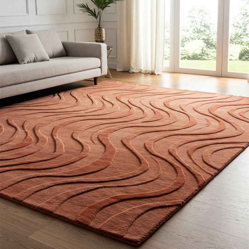 Luxury Terracotta Wave Pattern Rug | Modern Textured Abstract Carpet for Living Room bedroom high quality hand tufted wool rug