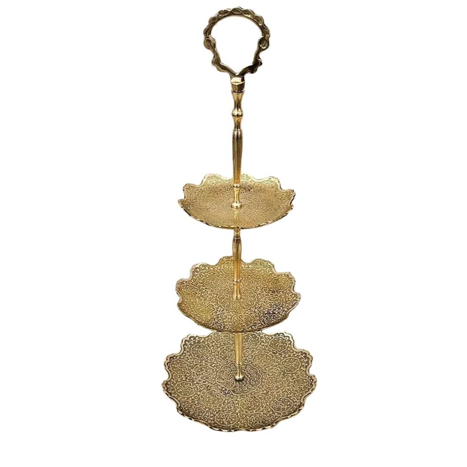 Luxury Three Tier Brass Serving Stand with Branch Handle for Dessert and Cake Display
