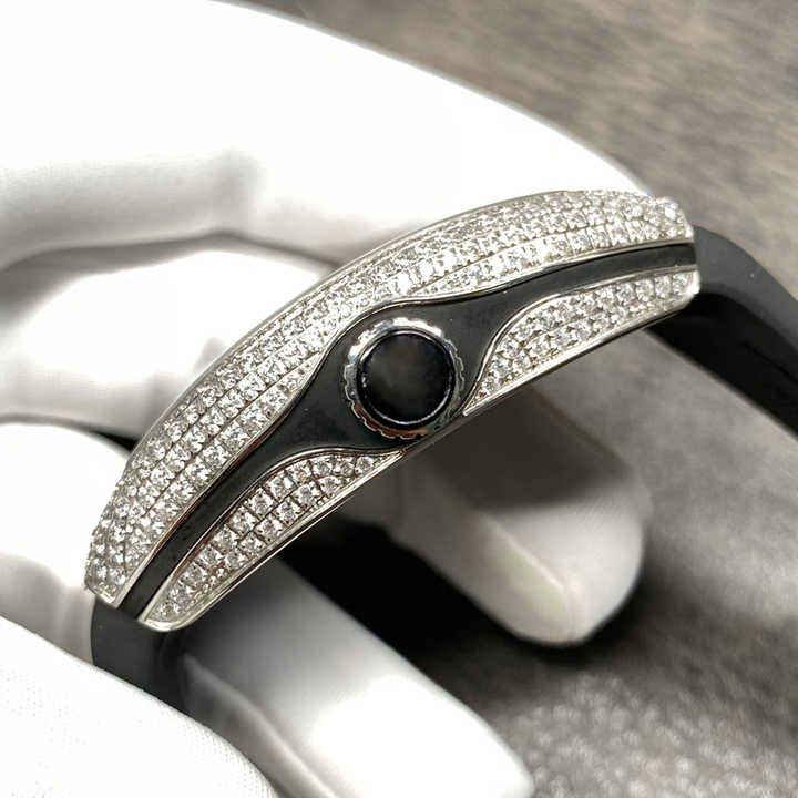 Luxury Tonneau Iced Out Hip Hop Watch Bust Down Moissanite Diamond Look Stainless Steel Case Leather Strap ETA Men's Watch