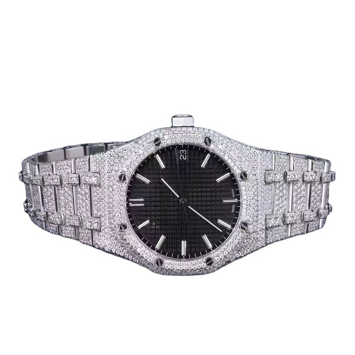Luxury Top Brand Quartz Fashion Classic Moissanite Diamond Watch Stainless Steel Band Sapphire Glass Custom Style Men