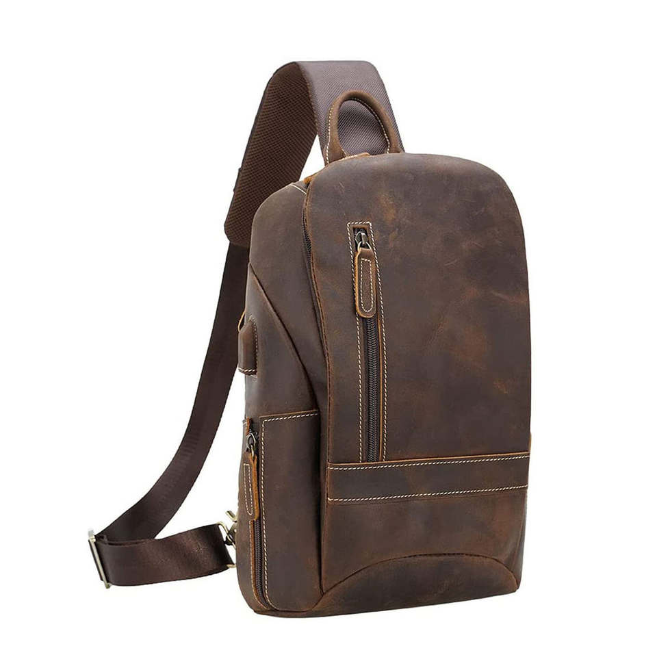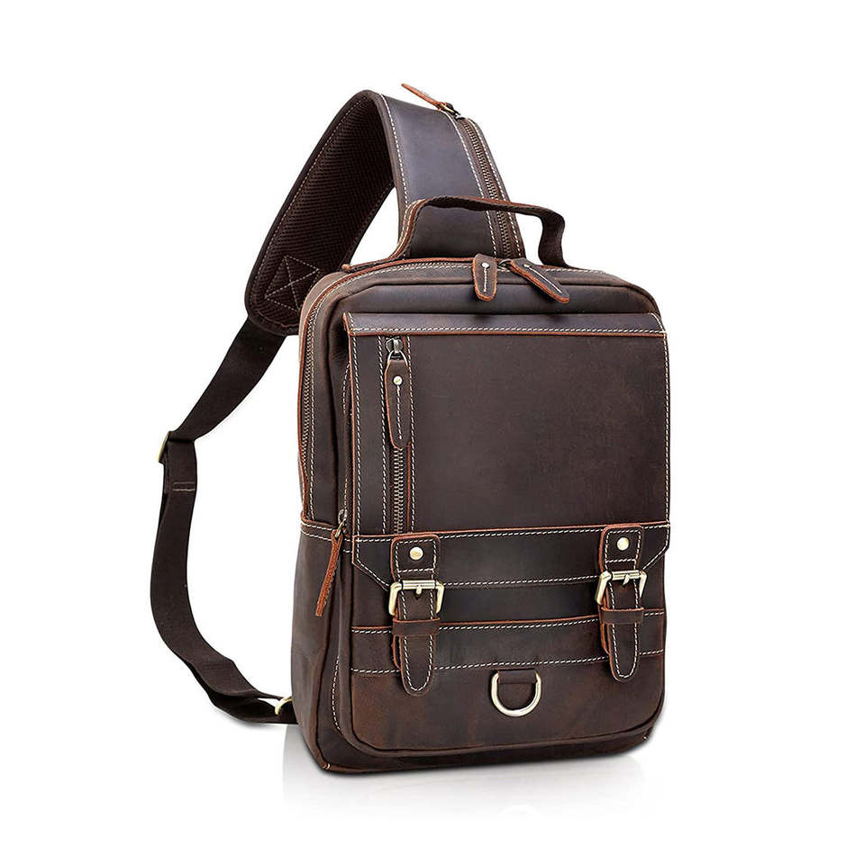 Luxury Top Layer Leather Sling Bag for Men Genuine Cowhide Chest Bag Multi-Pocket Crossbody Male Outdoor Travel Shoulder Bag