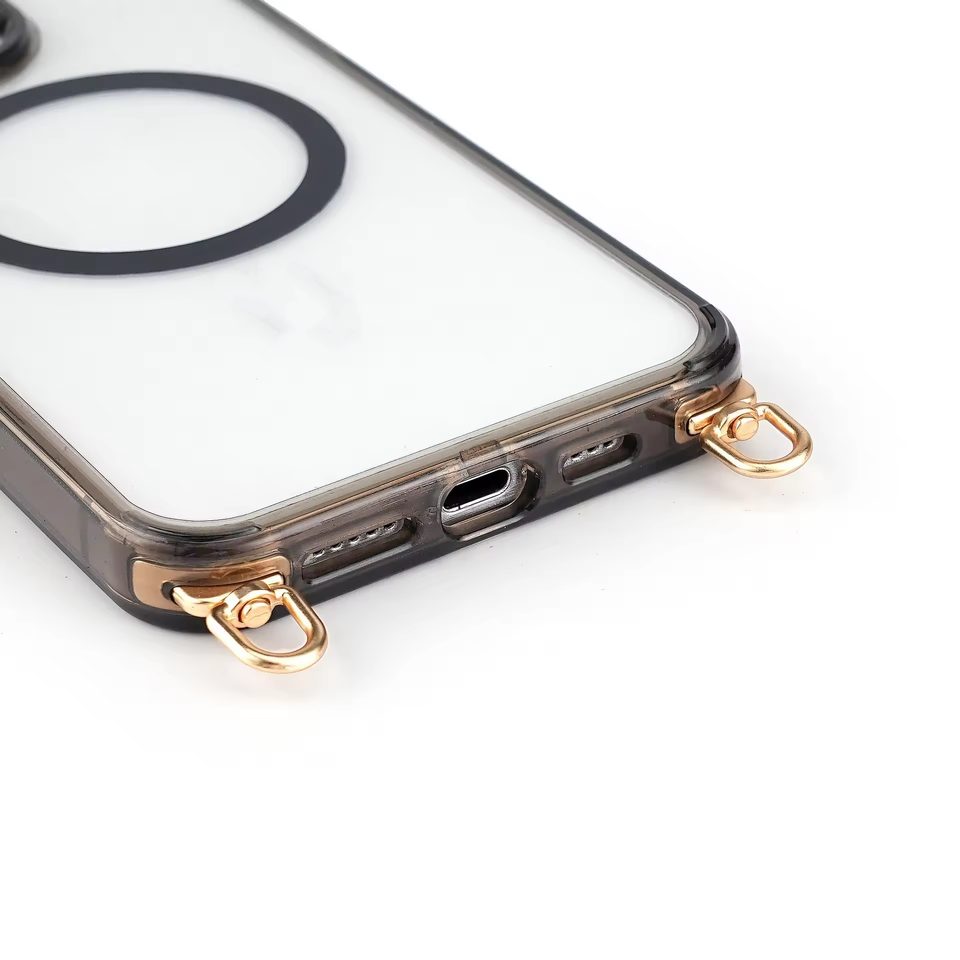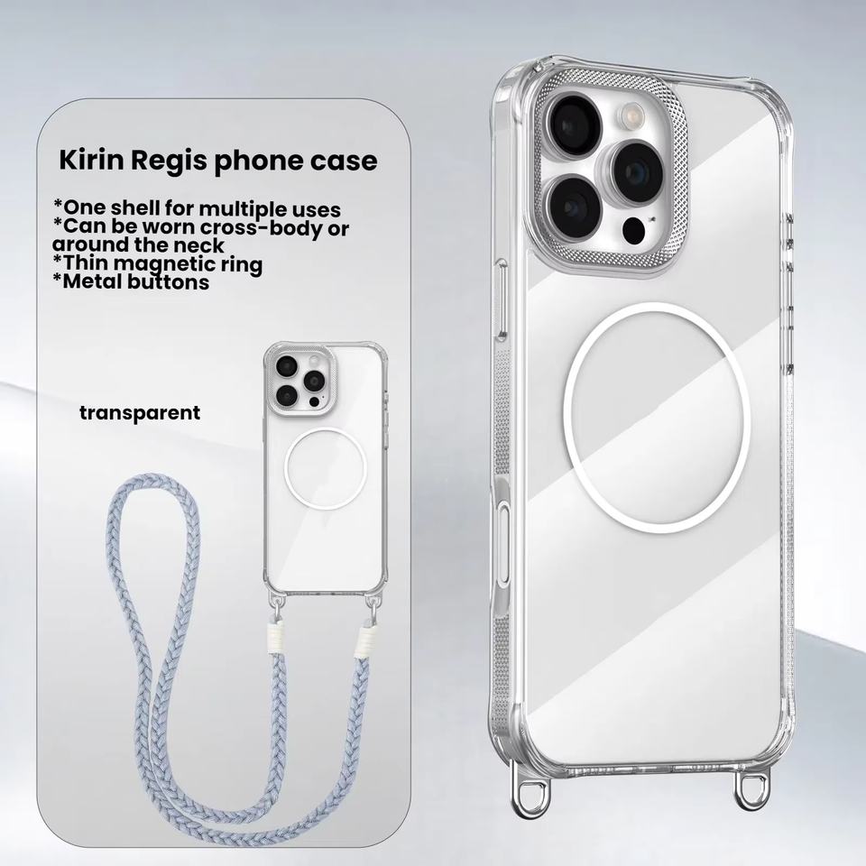 Luxury Transparent TPU+PC Magnetic Lanyard Shockproof Custom Logo for 17 Pro Max & Air Premium Mobile Phone Case