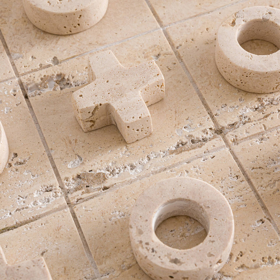 Luxury Travertine Board Game Handmade Natural Stone Chess or Checkers Set for Kitchen Living Room Home Office and Gift Decor