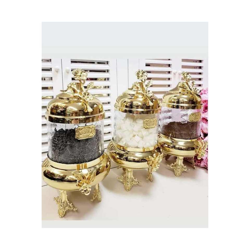 Luxury Turkish Cam Yellow 1L Set of 3 Elegant Storage Bottles & Jars
