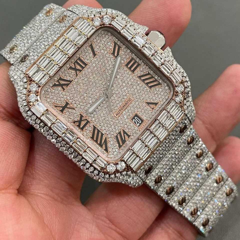 Luxury Two Tone Baguette Diamond Square Quartz Watch for Men Stainless Steel Sapphire Crystal 10 Bar Water Resistant Roman Dial