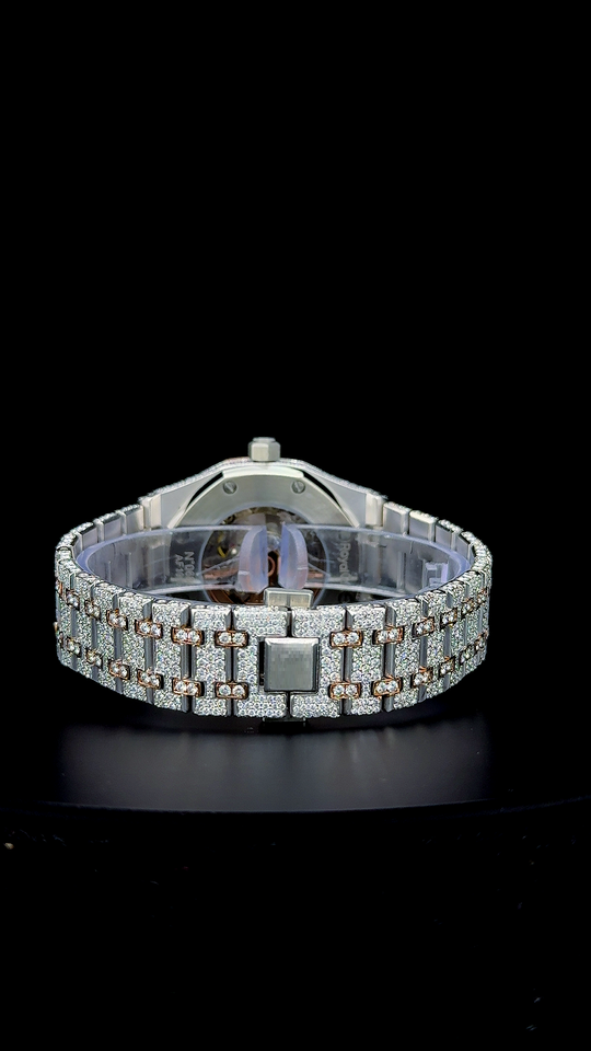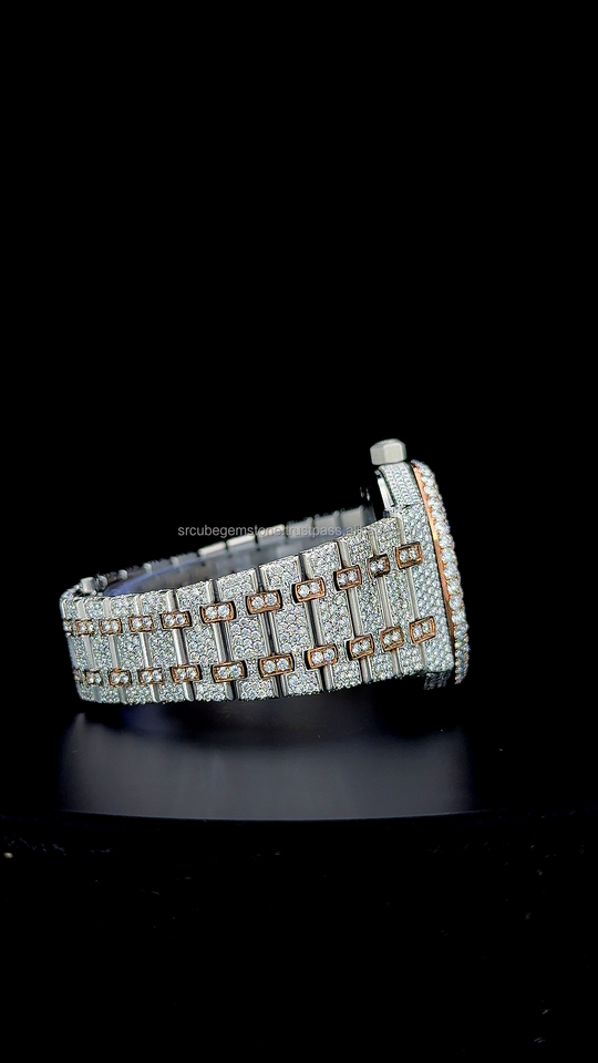 Luxury Two-Tone Iced Out Watch for Men - VVS Moissanite Diamond Bust Down Watch - Rose Gold Plated Dial Custom Timepiece