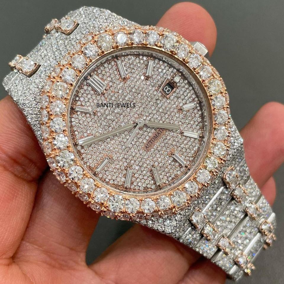 Luxury Two Tone Moissanite Iced Out Stainless Steel Automatic Watch with VVS Diamond Look Antique Hip Hop Style