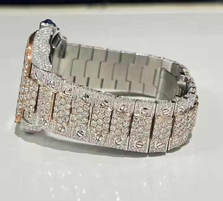 Luxury Two-Tone VVS Clarity Moissanite White Diamond Watch Square Stainless Steel Quartz Hip Hop Style for Men and Women.