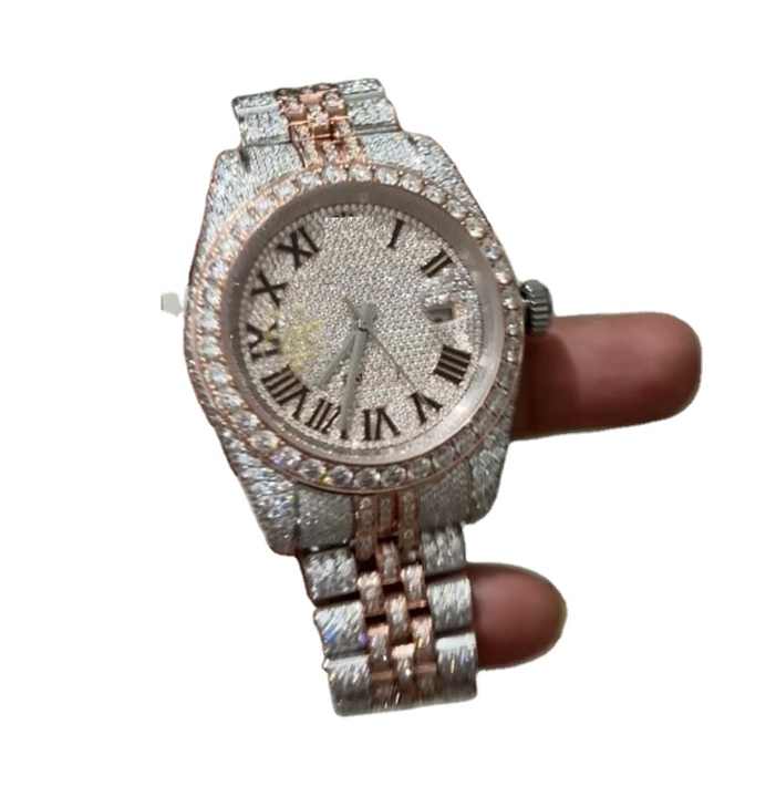 Moissanite Diamond Luxury Stainless Steel Watch for Men Custom Design Hip Hop Jewelry Leather Strap Sapphire Glass 30M