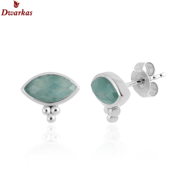 Luxury Unisex 925 Sterling Silver Doublet Stud Earrings with Aquamarine Gemstone Prong Setting for Engagement Wedding or Party