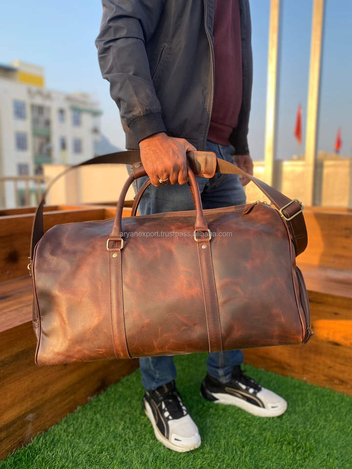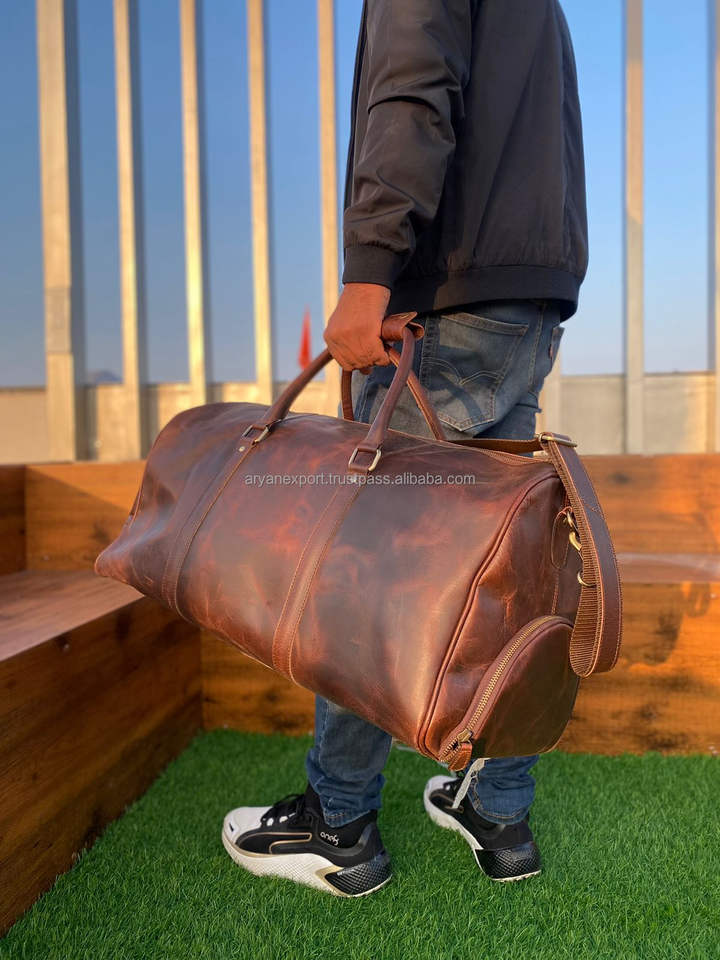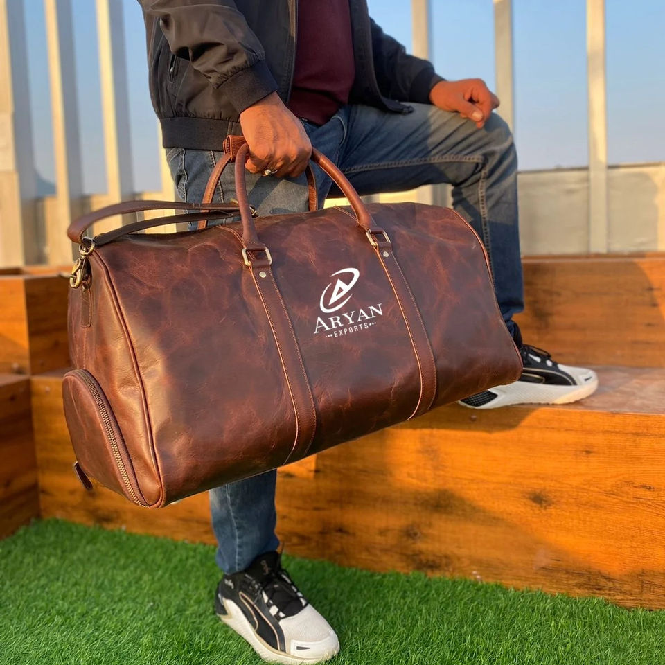 Luxury Unisex Custom Genuine Leather Duffel Bag Weekender Overnight Luggage Travel Bags