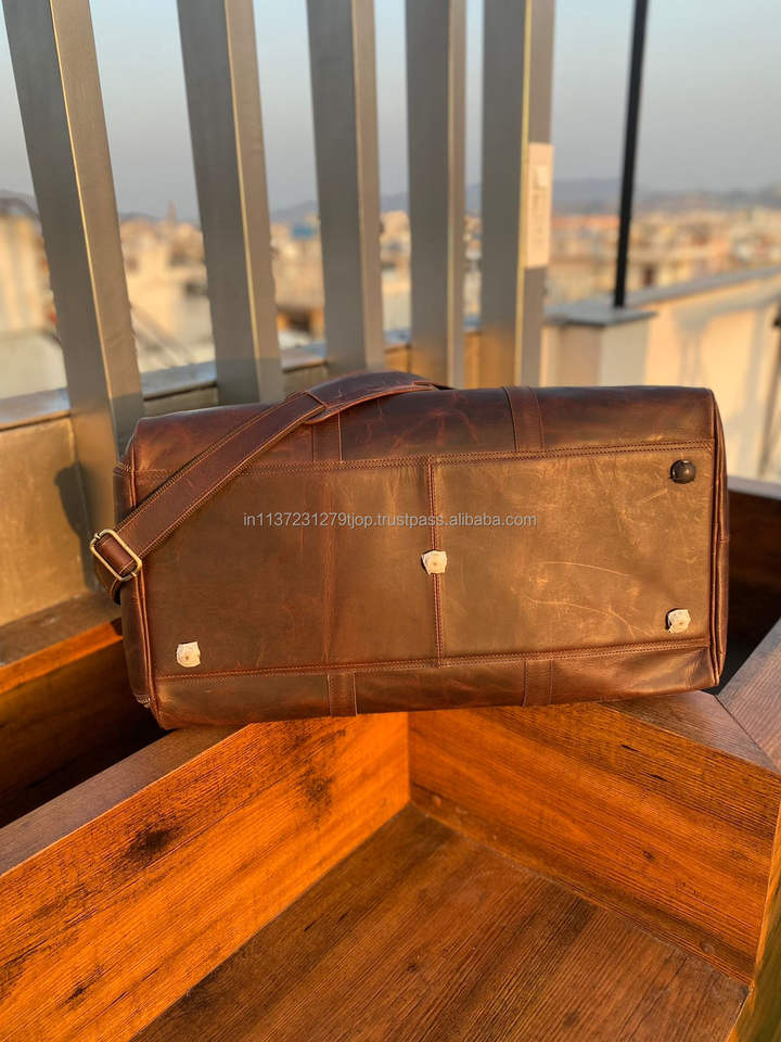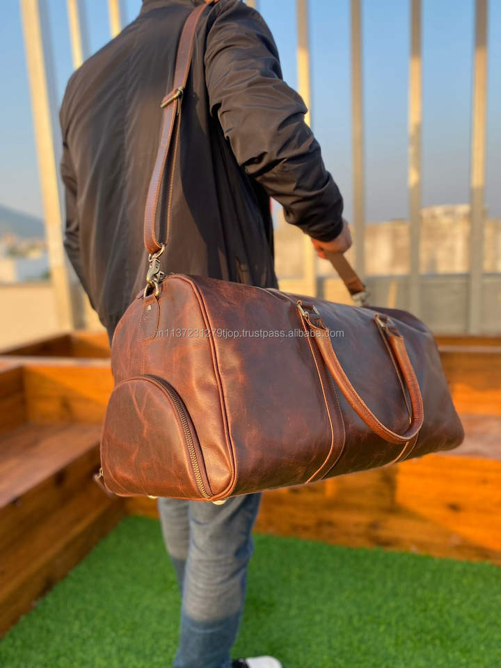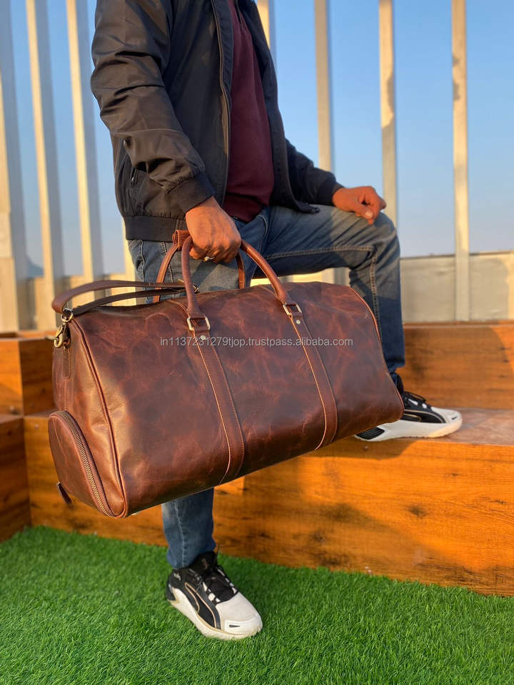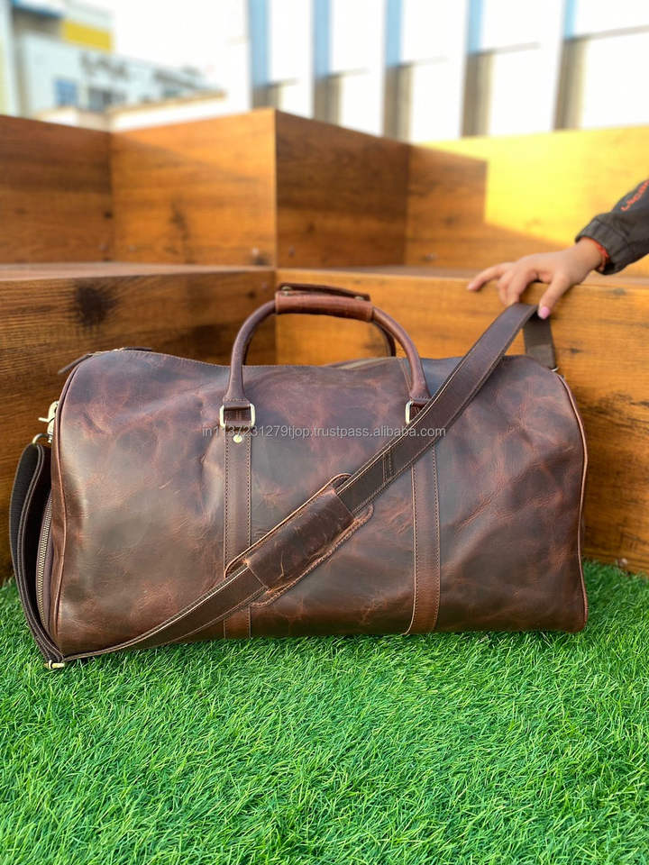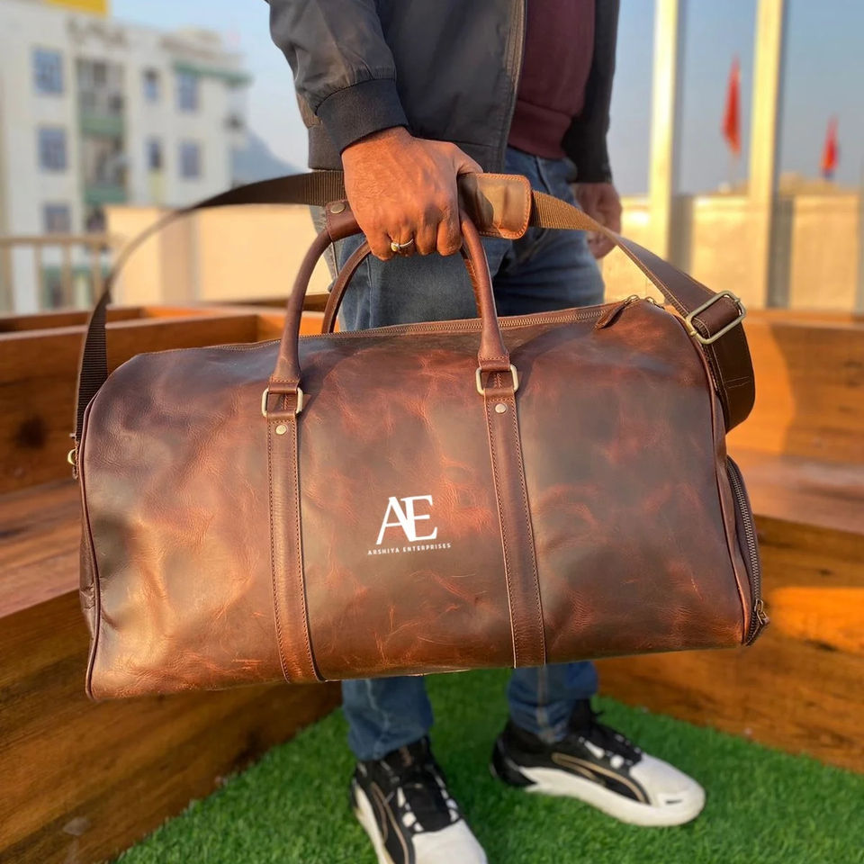 Luxury Unisex Custom Genuine Leather Duffel Bag Weekender Overnight Luggage Travel Bags
