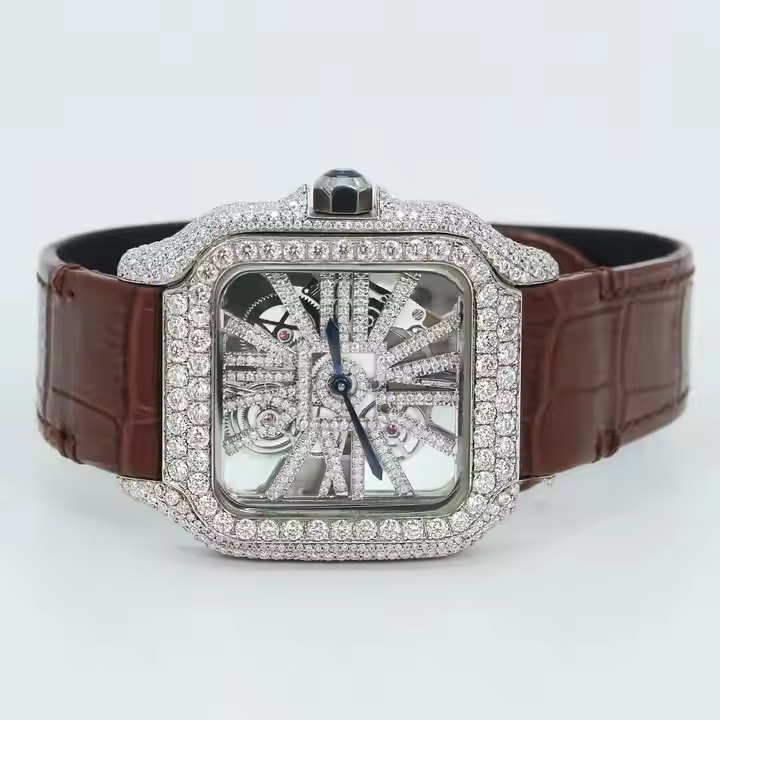 Luxury Unisex Mechanical Analog Square Watch Hip Hop Fashionable Iced Moissanite Diamond Quartz Glass Stainless Steel Trending