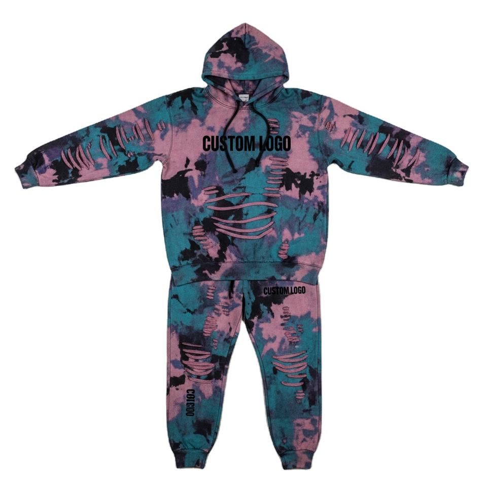 Luxury Unisex Outfit Heavyweight Tie-Dye Tracksuit with Sublimated Pullover Hoodie Sweatpants Custom Logo Streetwear for Winter