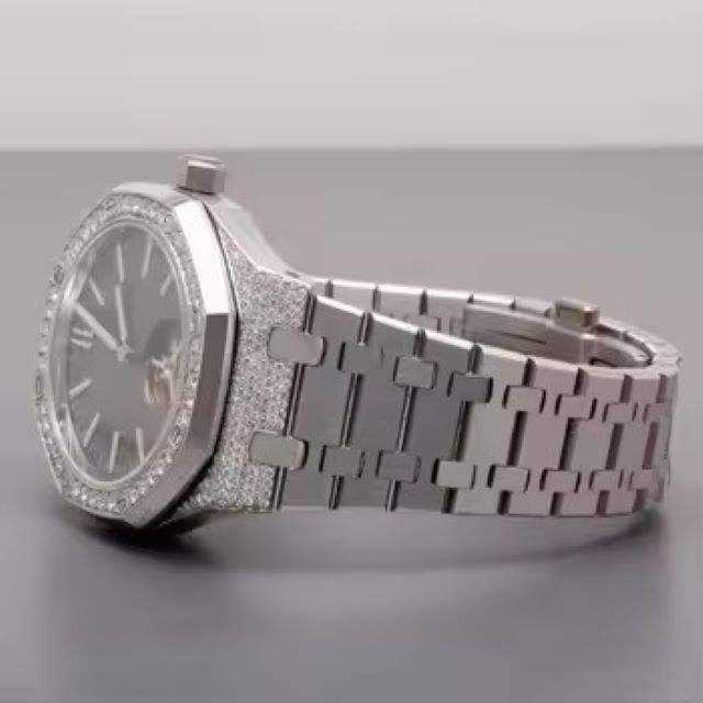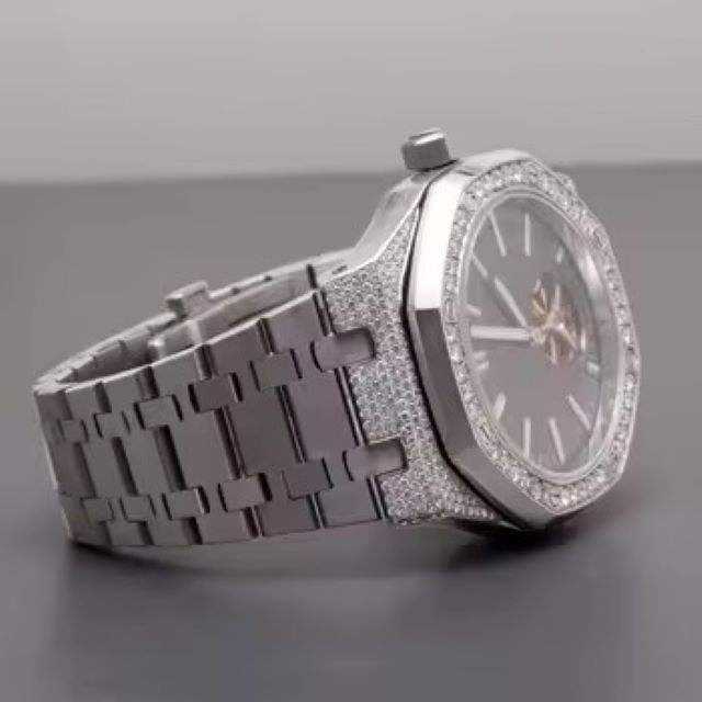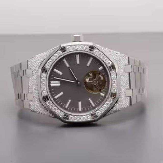Luxury Unisex Stainless Steel Leather ETA Mechanical Moissanite Sport Charm Watch Waterproof Analog Hip Hop Bling Iced