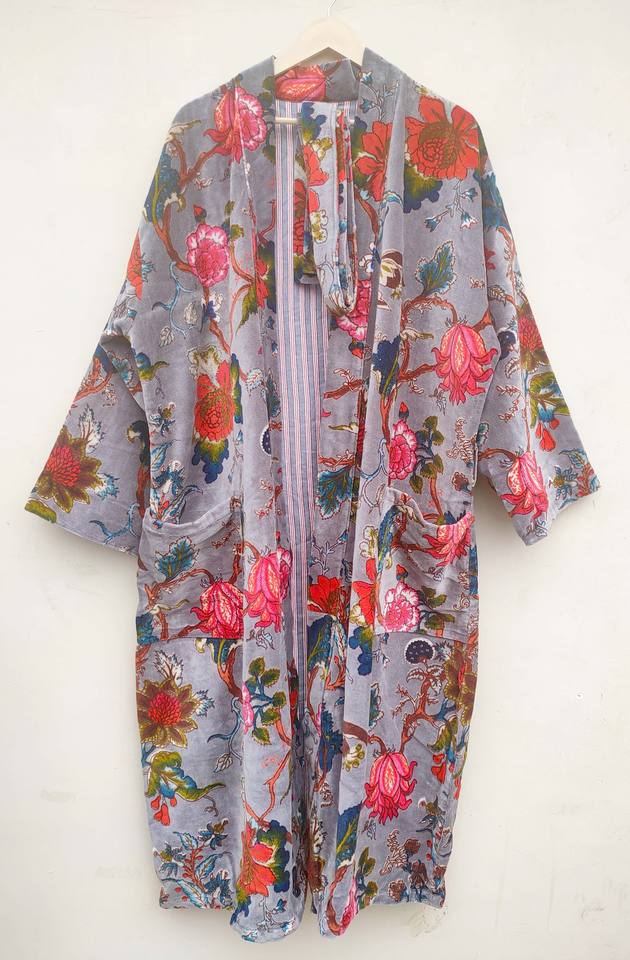 Luxury Unisex Velvet House Robe Boho Jacket Indian Cotton Lining Classic Elegant Sexy Gift for Adults Summer