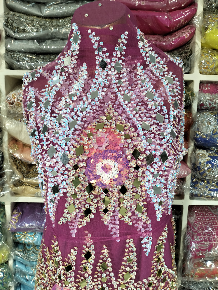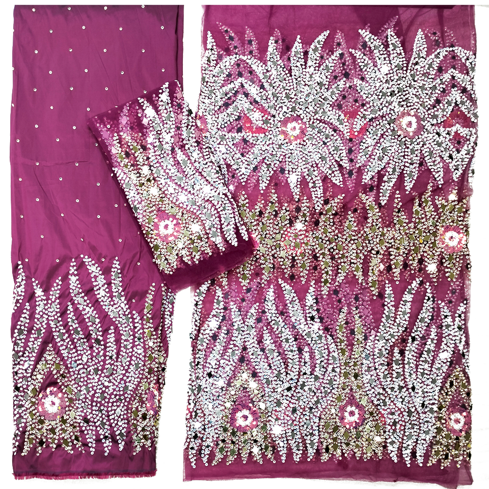 Luxury VIP Handmade Nigerian Wedding Dress Pure Silk George Wrapper Heavy Beaded Sequin Stone Beading for Spring/ Autumn/ Winter