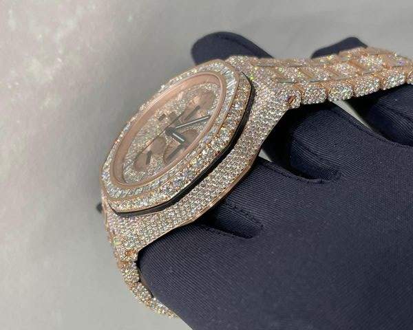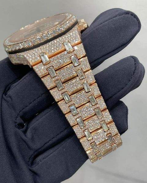 Luxury VVS Baguette Moissanite Diamond Stainless Steel Chrono Iced Out Hip Hop Mechanical Automatic Wrist Watch Men Fashion