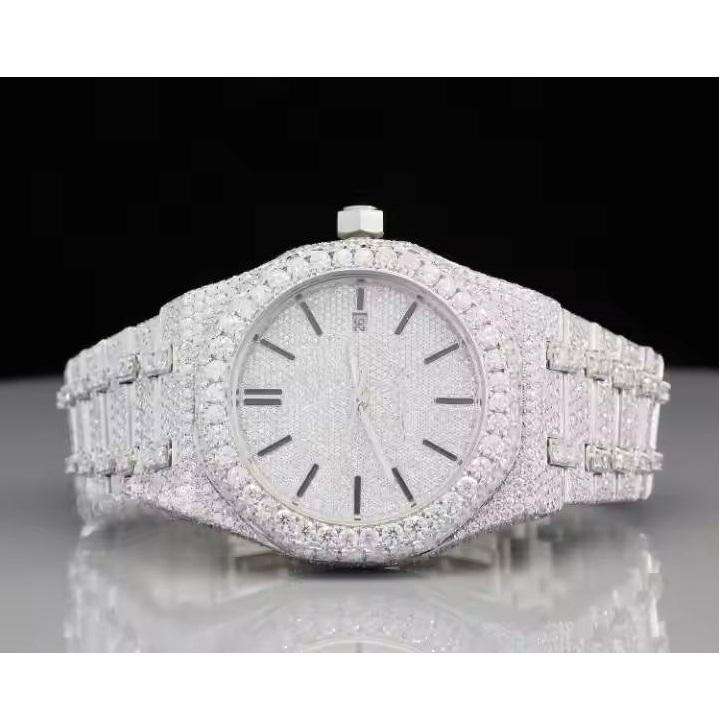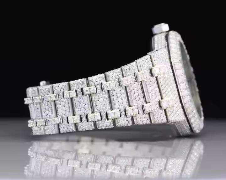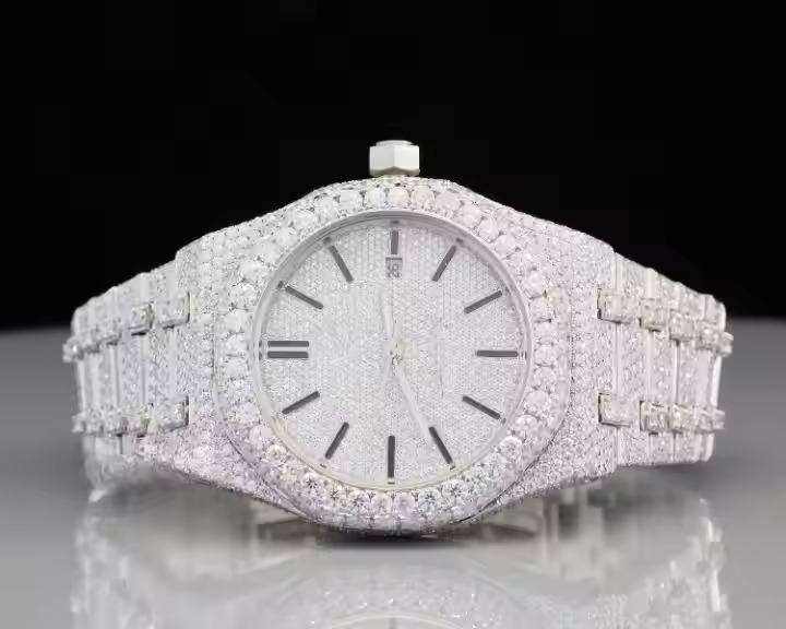 Luxury VVS Moissanite Quartz Business Hip Hop Watch with Durable Stainless Steel Band and Glass Dial