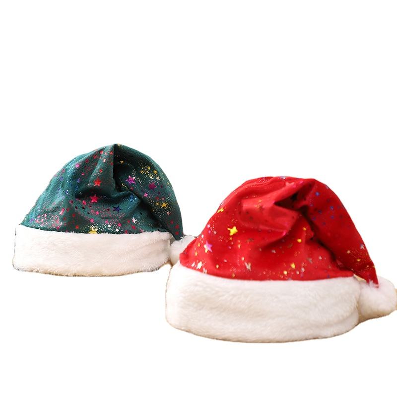 Luxury Velvet Red Christmas Santa Hat with Golden Foil, Inflatable & Custom Patches Festive Adult Party Headwear
