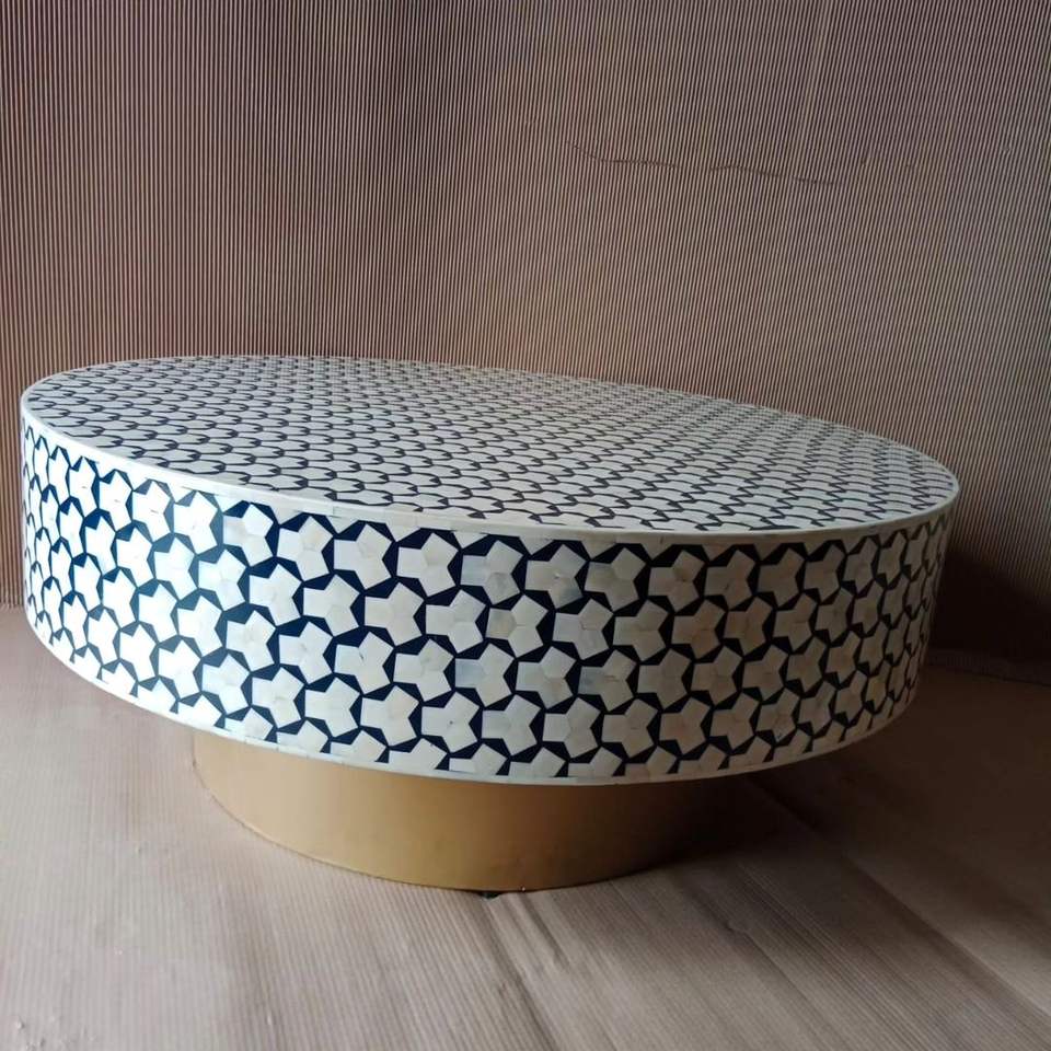 Luxury Vintage Bone Inlay Coffee Table with Custom Patterns Unique Round Wooden Design for Farmhouse Decor Luxury Living Room