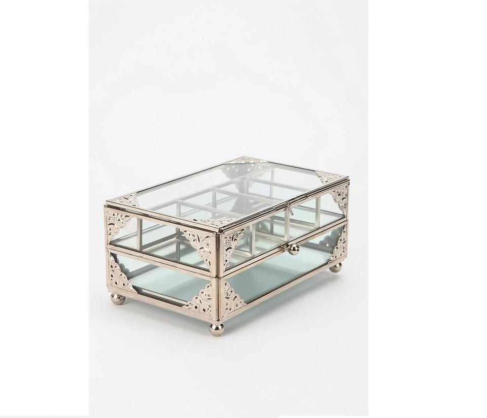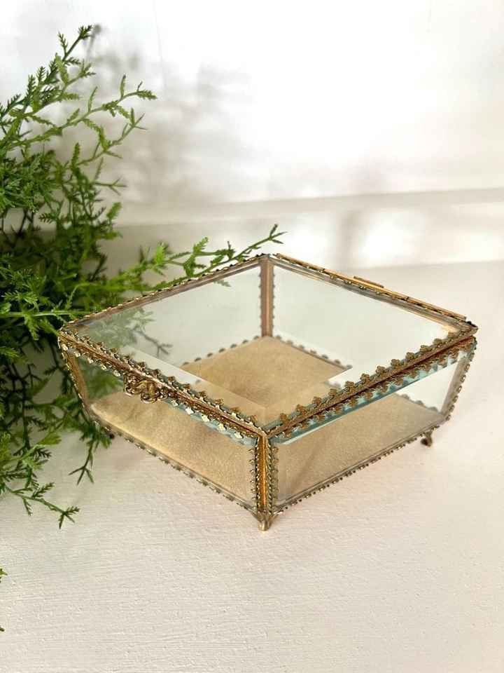 Luxury Vintage Glass Jewelry Box Metal Frame Mirrored Storage Organizer for Rings Earrings Accessories Customizable High Quality