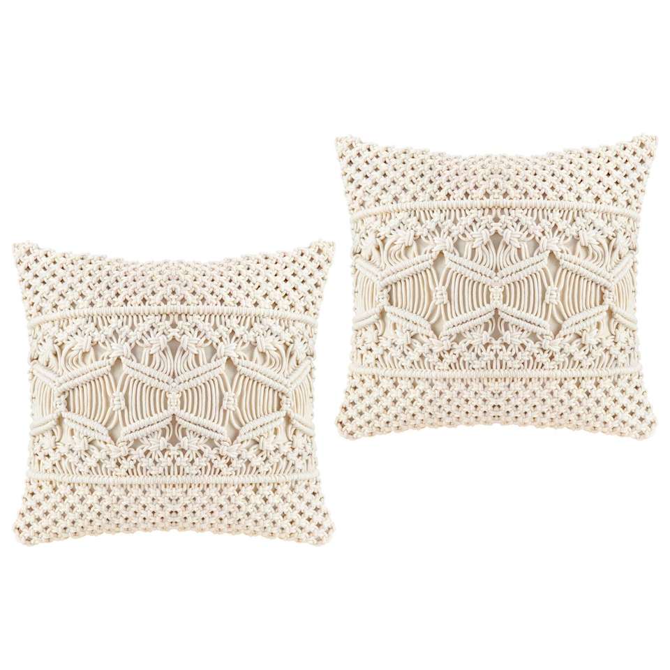 Luxury Vintage Pattern Macrame Design 100% Cotton Pillowcase Square Shape Knitted Techniques Modern Style for Home Hotel Use