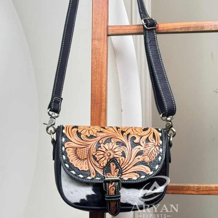 Product name:Women's Hand Tooled Cowhide Leather Saddle Bag