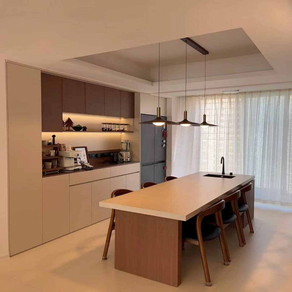 Luxury Walnut-Cream Dining Sideboard - LED Lighting & Integrated Coffee Bar, Organized Storage for Stylish Open Kitchens