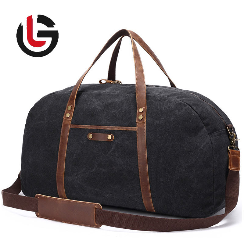 Luxury Water-Resistant Travel Bag for Men Women Grey Blue Brown Red Waxed Cotton Canvas Genuine Leather Trims Stylish Lady