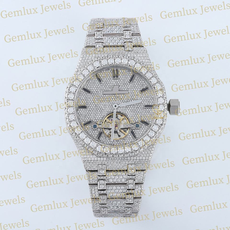 Luxury Wear Pass Diamond Tester D VVS Fully Iced Out Moissanite Diamond Automatic Movement Full White Hip Hop Watch For Men